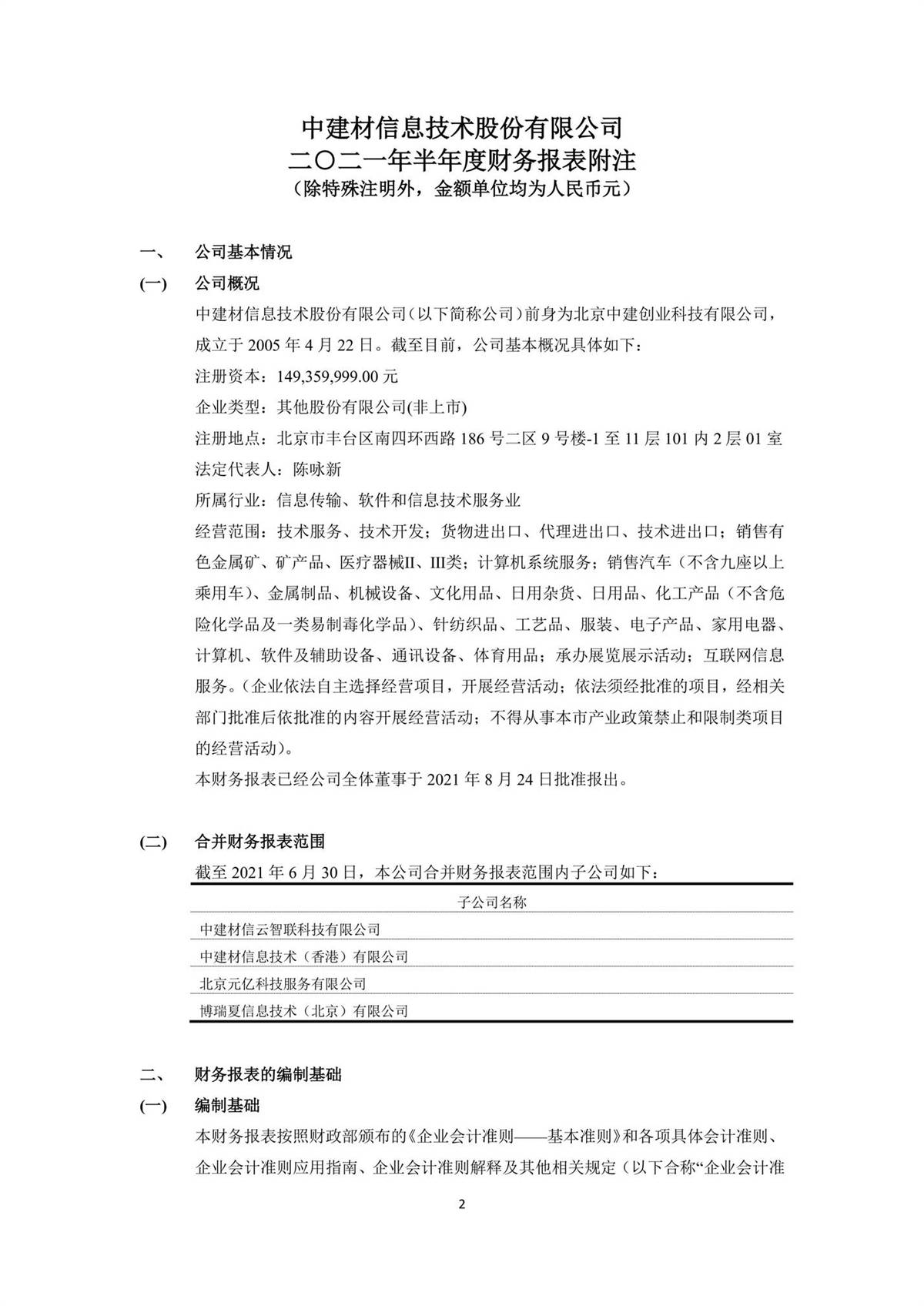 中建信息2021年半年度報(bào)告