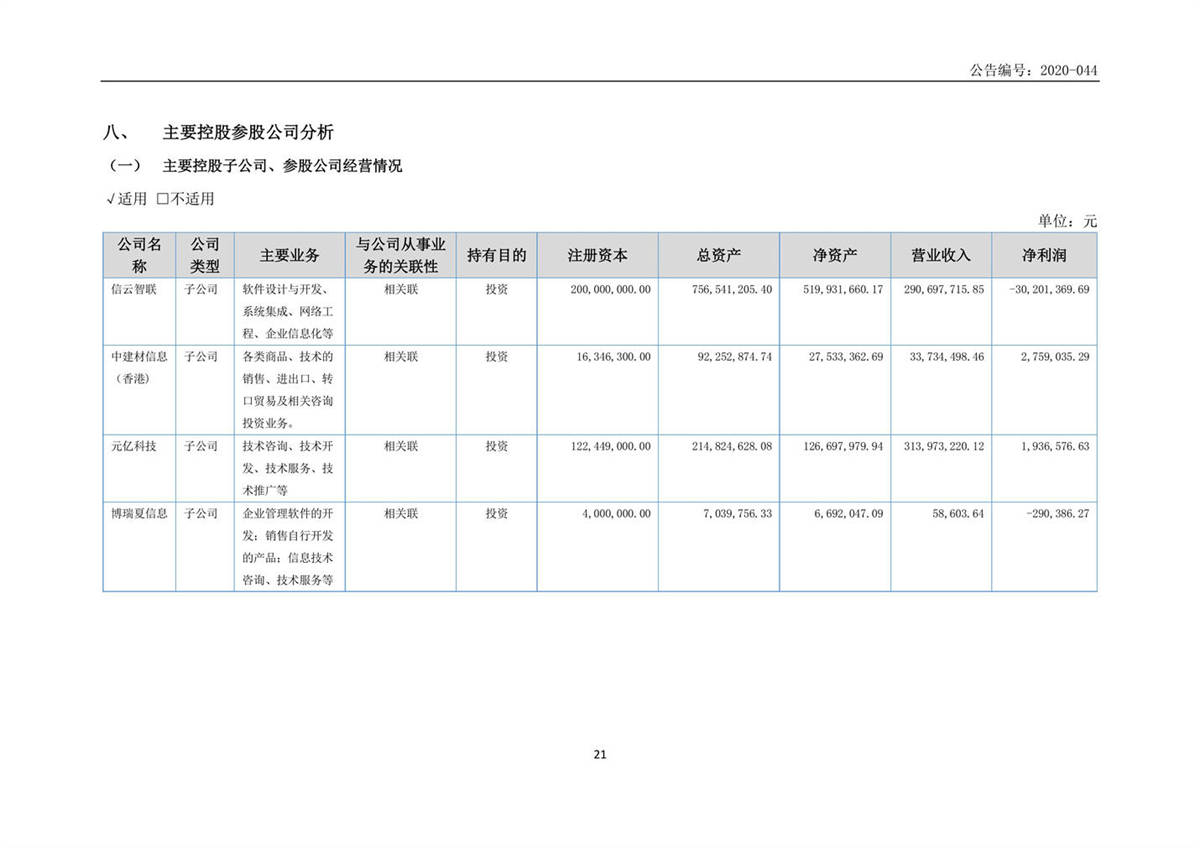 中建信息2020年半年度報告